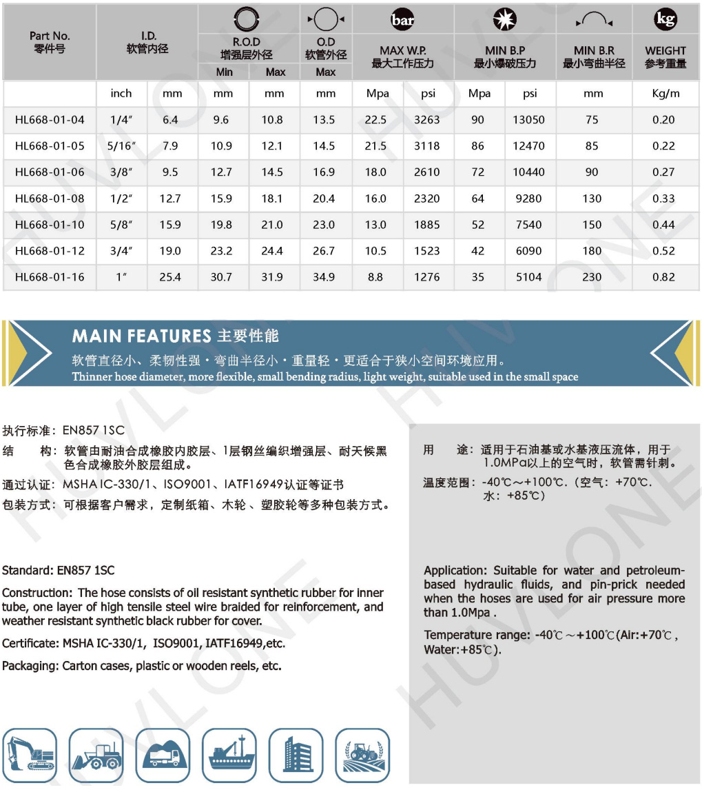 DIN EN857 1SC一層鋼絲編織橡膠軟管