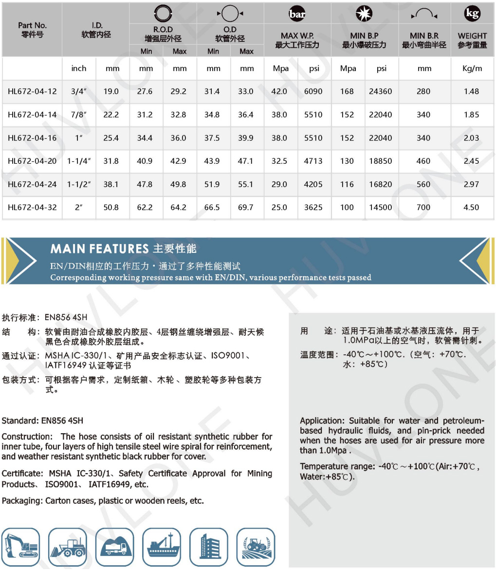 DIN EN8564SH四層鋼絲纏繞橡膠軟管