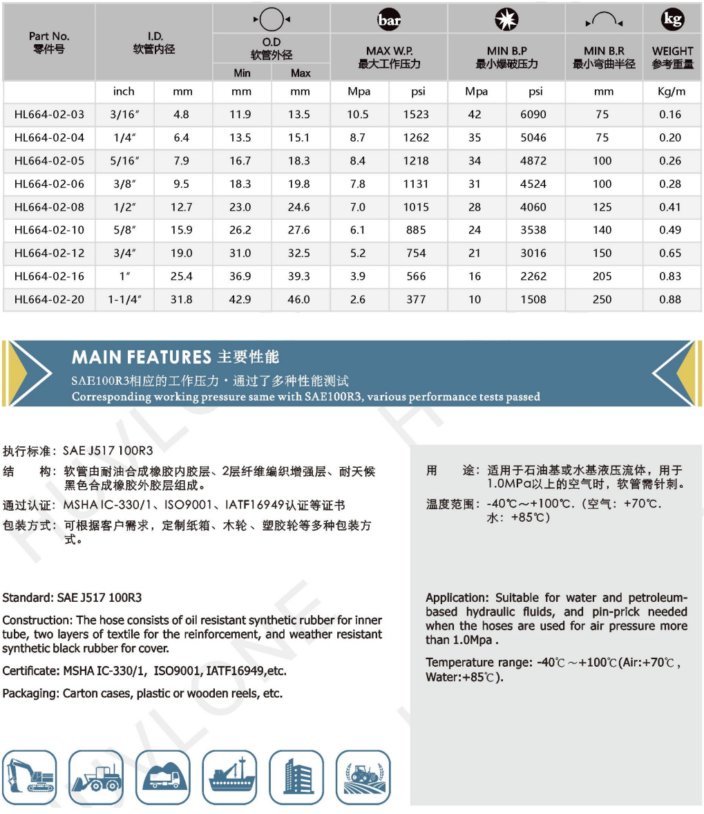 Product Usage:Suitable for water and petroleum-based hydraulic fluids,and pin-prick needed when the hoses are used for air pressure more than 1.0Mpa .