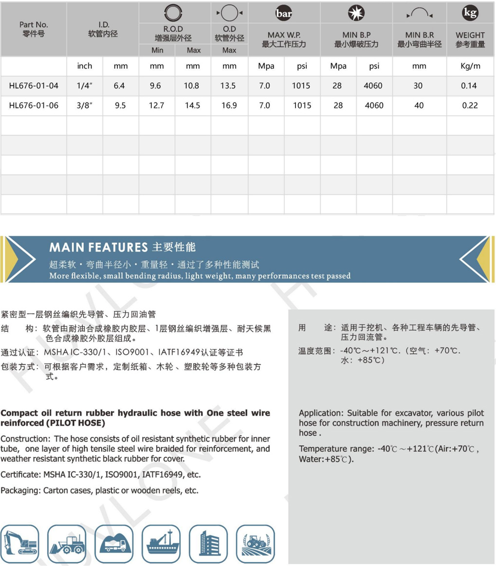 Compact oil return rubber hydraulic hose with One steel wire reinforced (PILOT HOSE)