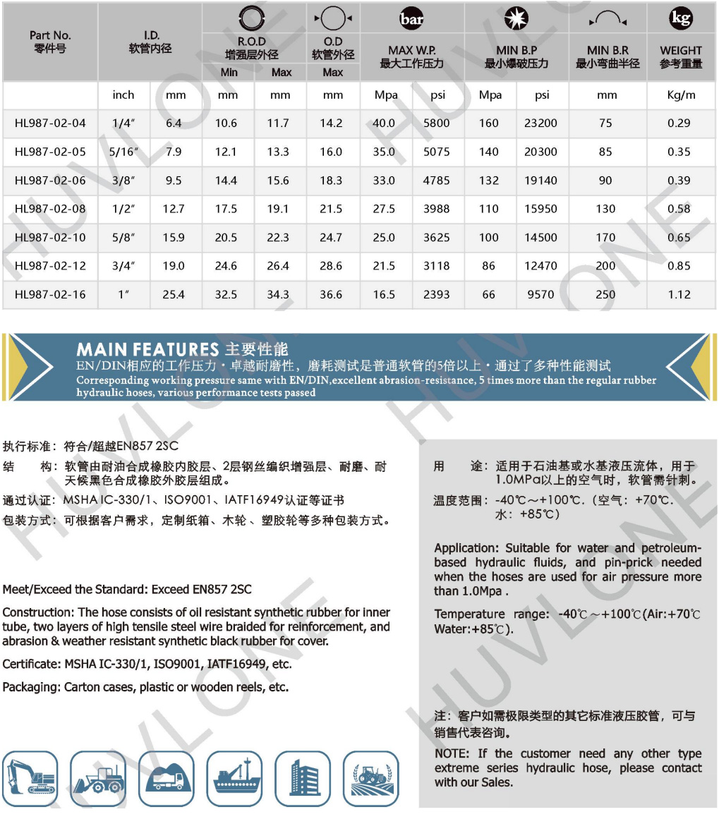 Meet/Exceed the standard of DIN EN857 Two steel wires braided rubber hydraulic hose with abrasion - resistance