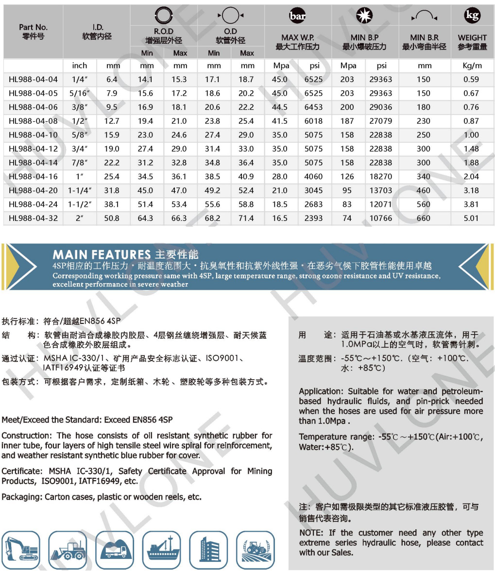 Meet/Exceed DINEN856 4SP Four steel wires spiral rubber hydraulc hose with hiah & Low temperature - reslstance