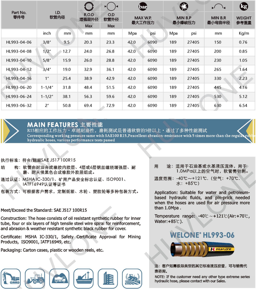 Meet/Exceed SAEJ517100R15 Four steel wires spiral rubber hydraulic hose with abrasion - resistance